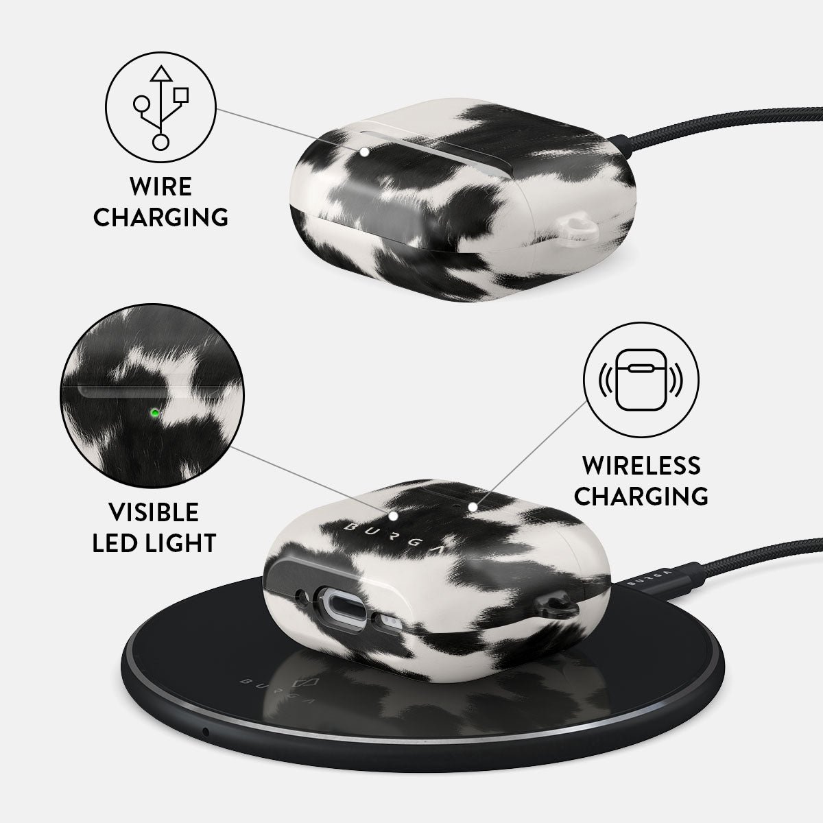 Your Airpods deserves to look cute and stay protected at all times. and our Achromatic Apple AirPods 4 case cover will help you keep it safe and sound. The cow print in black and white is both daring and classic. making it the perfect addition to your accessory collection.