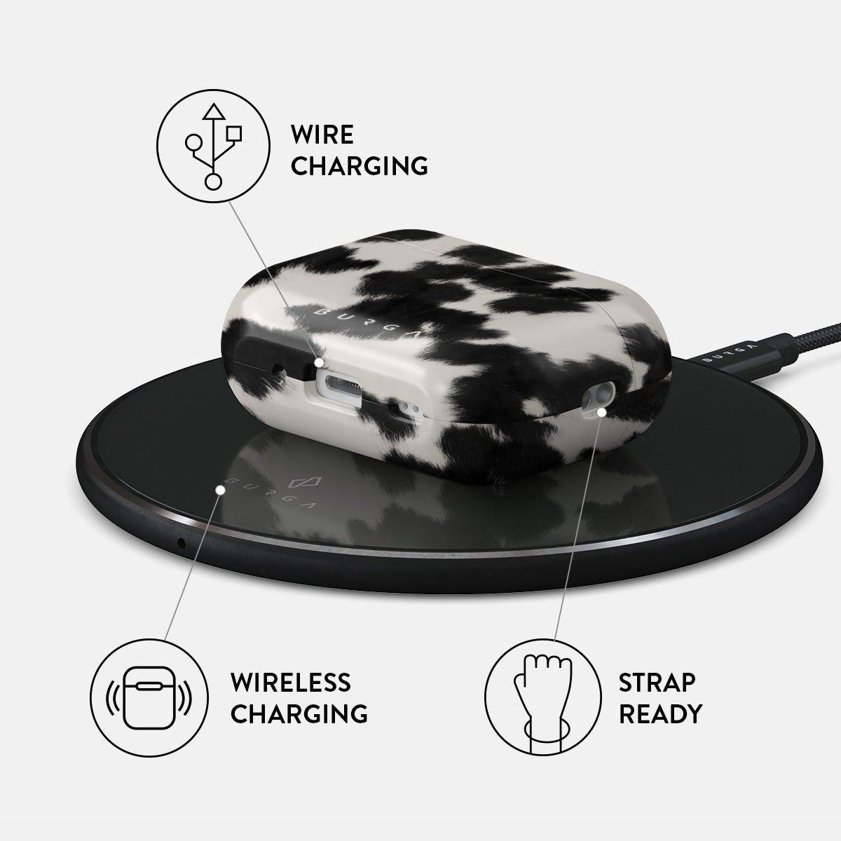Your Airpods deserves to look cute and stay protected at all times. and our Achromatic Apple Airpods Pro 2 case cover will help you keep it safe and sound. The cow print in black and white is both daring and classic. making it the perfect addition to your accessory collection.
