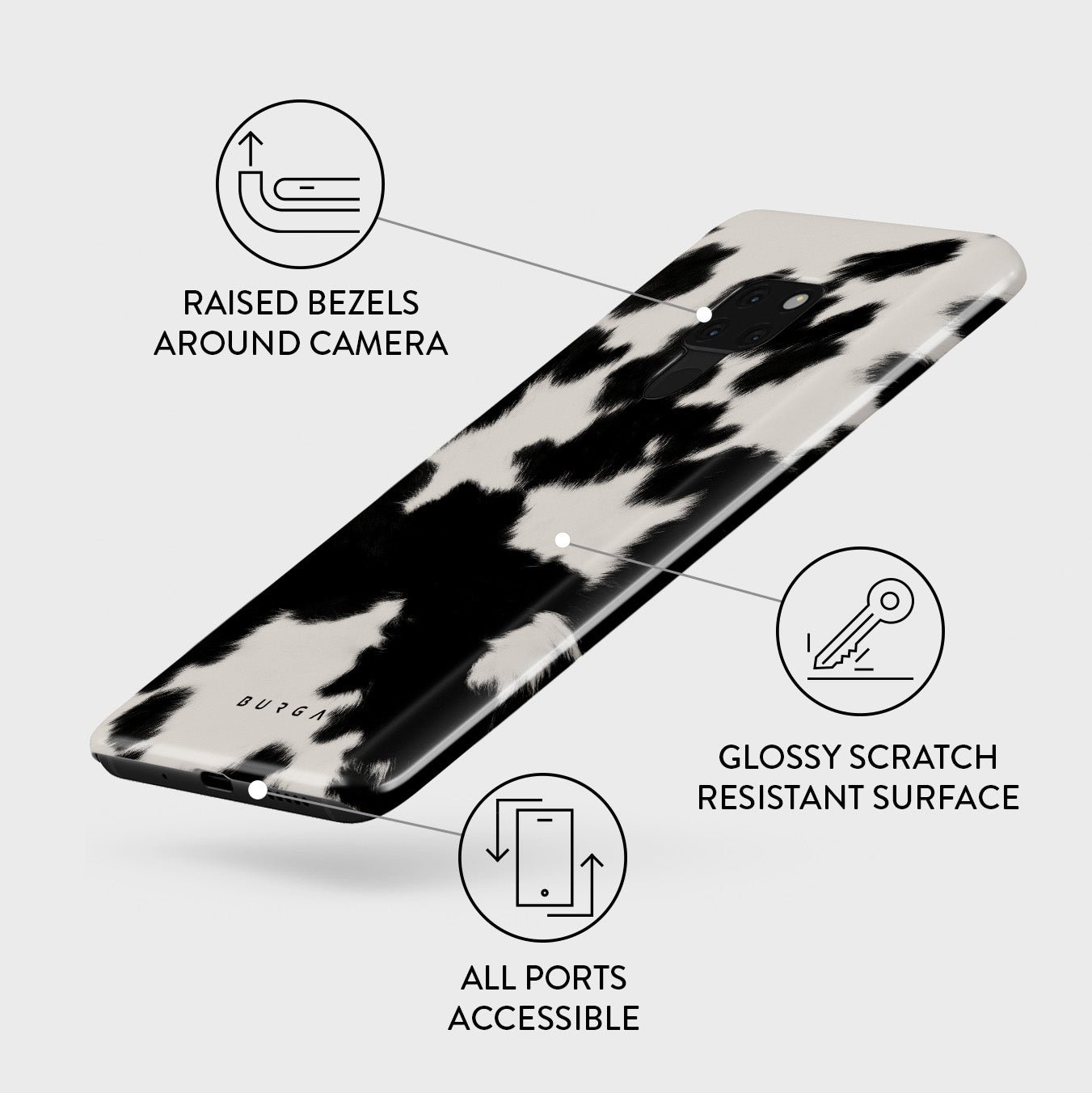 Your phone deserves to look cute and stay protected at all times. and our Achromatic Huawei Mate 20 phone case will help you keep it safe and sound. The cow print in black and white is both daring and classic. making it the perfect addition to your accessory collection.